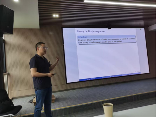 姜宇鹏老师从非线性序列的反馈函数入手,通过对某些低次项进行限制,对低阶de Bruijn序列的反馈函数做了大量实验,通过实验数据的归纳分析,得到了反馈函数的若干规律。随后就如何发现问题、研究问题,姜宇鹏老师和师生进行了深入交流。