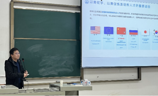 本次活动主要围绕网络空间安全领域对新工科人才的需求展开。学院副院长何鹏详细介绍学院信息安全专业、密码科学与技术专业的培养目标和培养要求,强调大学阶段需要通过积极参与网安相关学科竞赛、护网行动、实习实训等来提升个人实践动手能力,鼓励大家大胆尝试、坚持不懈、敢于挑战。