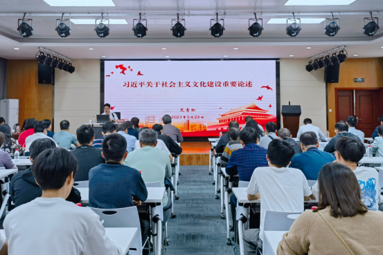为深入开展学习贯彻习近平新时代中国特色社会主义思想主题教育,根据学校主题教育读书班安排,5月23日下午,校党委常委、副校长艾青松以《习近平关于社会主义文化建设重要论述》为题作专题辅导报告。计算机与信息工程学院、人工智能学院、太阳成tyc9728集团的90余名师生代表参加学习。